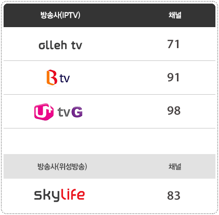기타 업체에서의 채널 번호는 아래 링크를 참고하세요.